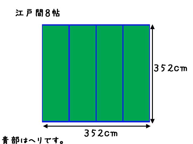 【ござ】【安全・安心!国内自社工場製】抗菌・消臭緑茶吹き付けイ草上敷き「大川」 352×352cm(江戸間8帖)(畳表と同じ糸引織上敷)(薄縁うすべり)(関東間・田舎間・五八間)【送料無料】